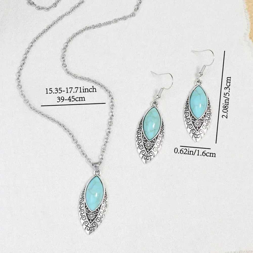 Enhance your elegance with Heritage – Blue. This stunning necklace and earrings set exudes sophistication and exclusivity. With intricate details and a captivating design, this set will make you feel like a piece of art or literature come to life. Upgrade your style today. Chain measures 16".