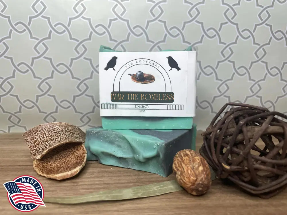 Indulge in luxury with Ivar the Boneless soap bar. Made with a blend of premium oils and fragrances, including olive, coconut, and almond, this bar will leave your skin feeling nourished and refreshed. Elevate your daily routine with the sophisticated packaging and exclusive ingredients of this one-of-a-kind soap bar. 3 oz.