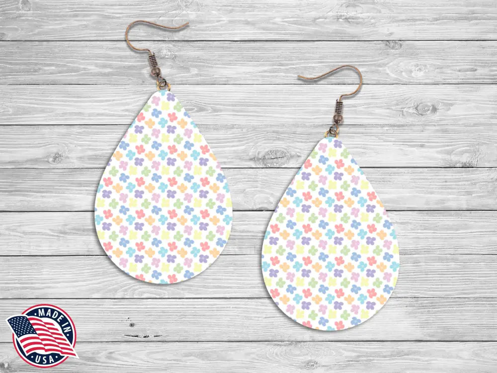 Adorable pair of earrings. Teardrop measures 1 1/4" wide x 1 3/4" long. Made with soft leather.