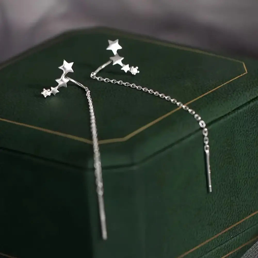 Indulge in the celestial beauty of our Twinkle Twinkle – Silver earrings. Crafted with stainless steel, the delicate pull through design features a shining star that adds a touch of elegance to any outfit. Embrace the luxury of these sophisticated earrings and let your style shine like the stars above. Measures 2" Stainless Steel